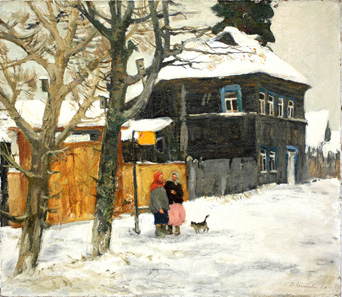 我的两位老师对我的影响是极其深刻的,最明显的是首先体现在我的毕业作品《1942年》以及我毕业后的一些作品之中,那些画作包括选择性题目:《去集体农庄》、《老巢》、《集体化》)《初秋》、《特尔日科的春天》。这些作品都完成于位于莫斯科和彼得堡之间的小城——“美术学院别墅”。这个地方很久以前就被称为俄罗斯的巴比松(法国小镇)。俄罗斯苏维埃联邦社会主义共和国美术家协会曾在那里为画家的创作提供各种条件,那里有很好的创作工作室,画家的生活得到很好的照顾。最主要的是这个地方本身,这里可能是俄罗斯大地上最美丽的地方了:错落的湖泊、广袤的森林以及居住着农民的古老村庄。这些景色中的很多都被我们苏联时期的画家描绘过。很多人曾在那里完成了自己所有的创作。这其中包括特卡乔夫兄弟、维克多·西德罗夫、巴维尔·库察金、阿烈克山德勒·罗曼内切夫、维克多·列伊赫特及很多其他画家。他们在那里有自己的房子,并且他们的作品多少都与这个令人赞叹的地方有所联系。.我从1985年到1988年也在这个地方绘画和工作,许多这一时期的作品也正是在这里完成的。