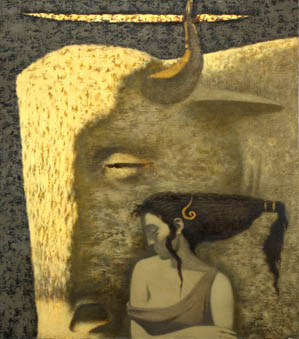 《达纳亚》表现了女人和天鹅的绵软和圣洁、宁静和温柔,是一种和谐的组合;《劫持欧罗巴》和《帕西发厄》,将柔弱白嫩的女人和強壮粗重的牛放在一起,是一种对比和冲突的组合。这些都是为了完成了画家对主题的解读和渲染。这套组画接近套色木刻,色彩单纯洗炼,画中的肌理有一种拓印的效果,使画面显得工整精致。有论者说,顾氏的作品“旣忠于现实,又超脱于现实。画面细腻,色彩丰富,谐和淡雅而极具想象力。”