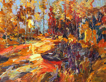 《秋天》是俄罗斯画家亚历山大•舍尔图诺夫的作品。画面景象表现的主题鲜明,一看便知这是一个“秋天”的故事。这是一幅典型的俄罗斯学院派风格的油画,高度准确和概括的笔法、厚重的色彩和造型讲究的笔触。这些特点都是俄罗斯近代学院派油画的典型风格。